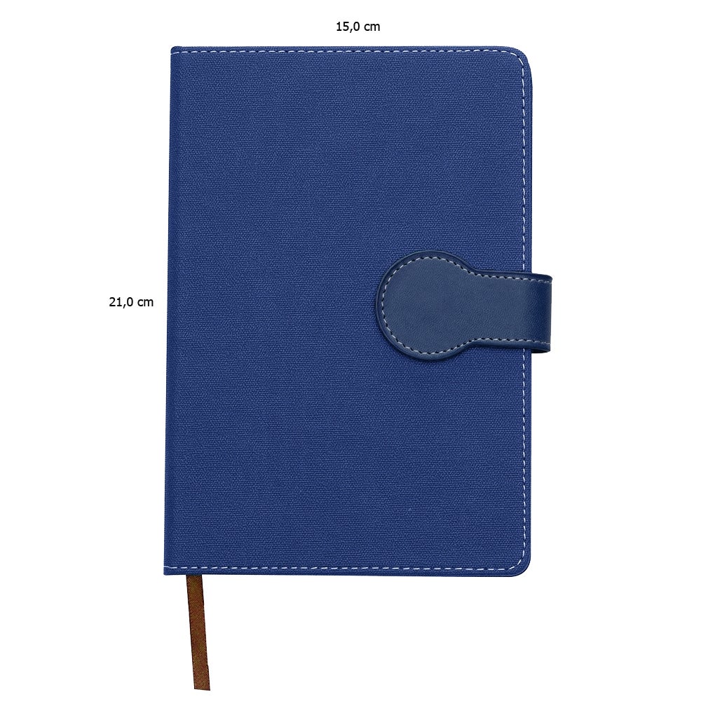 Capa em material sintético com fecho imantado, contém aproximadamente 96 folhas amarelas sem pauta e marcador de página em cetim. REF: 1103