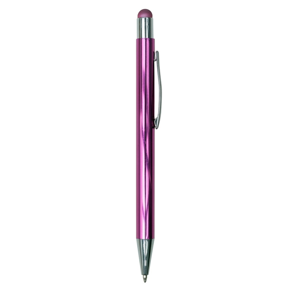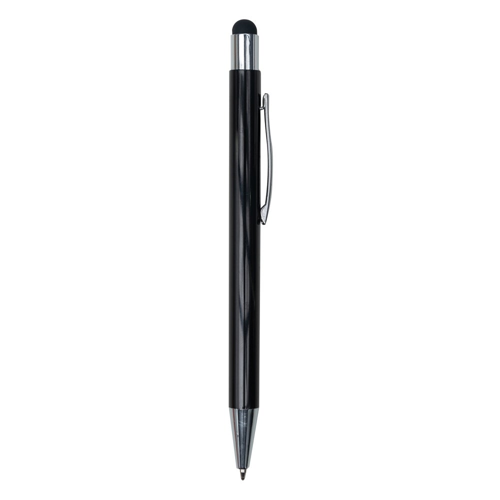 Caneta touch screen com detalhes prata, acionamento por clique. Borracha touch na mesma cor da caneta. REF.: 1369