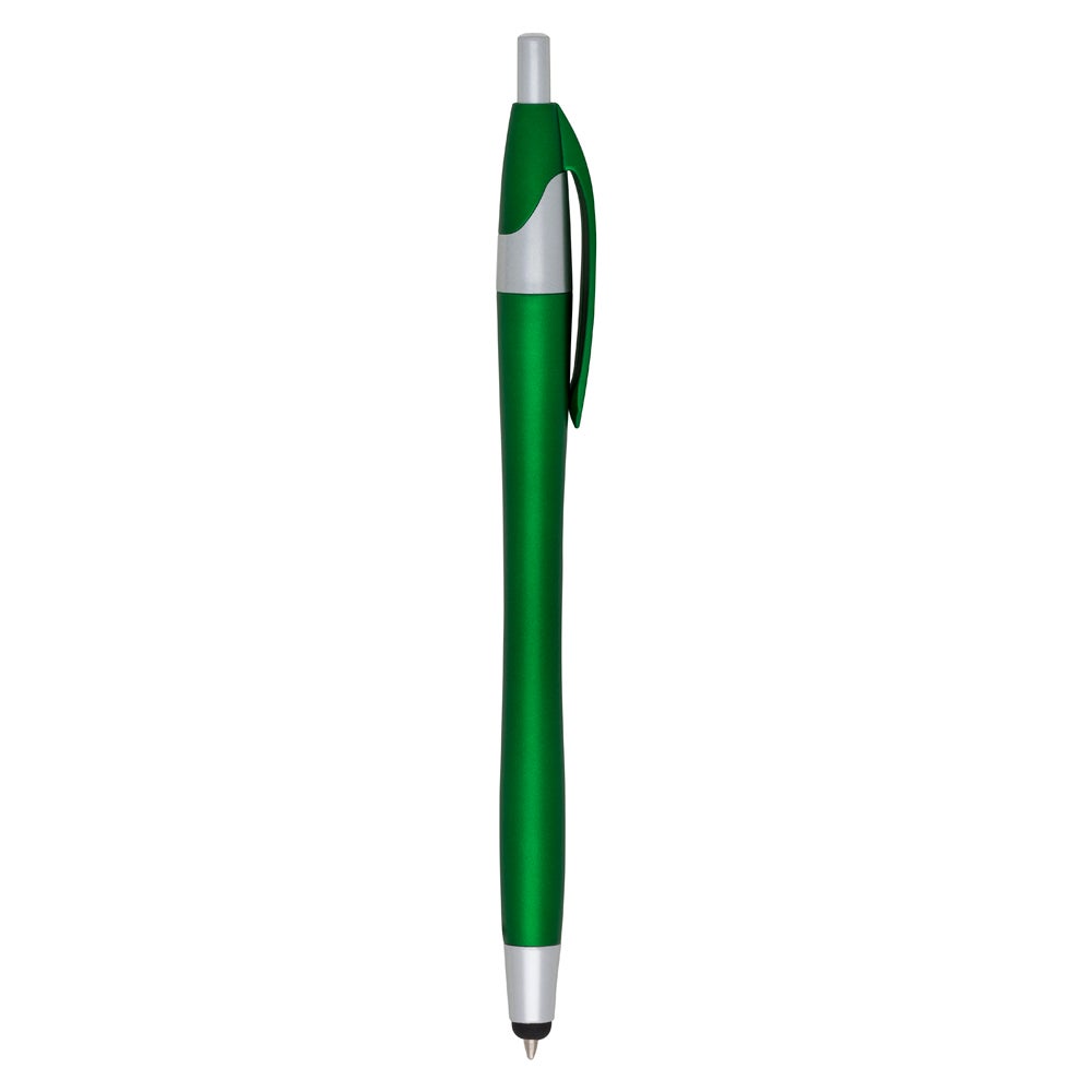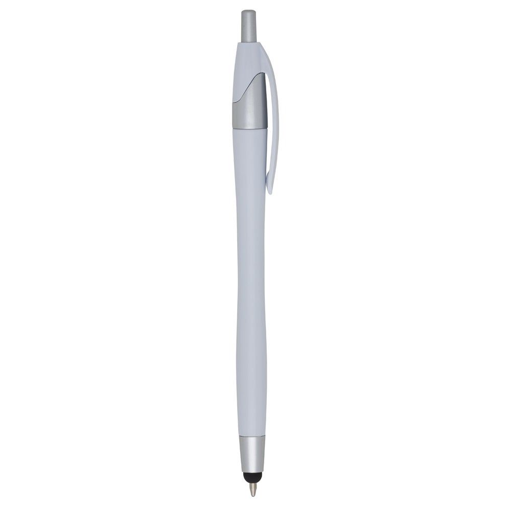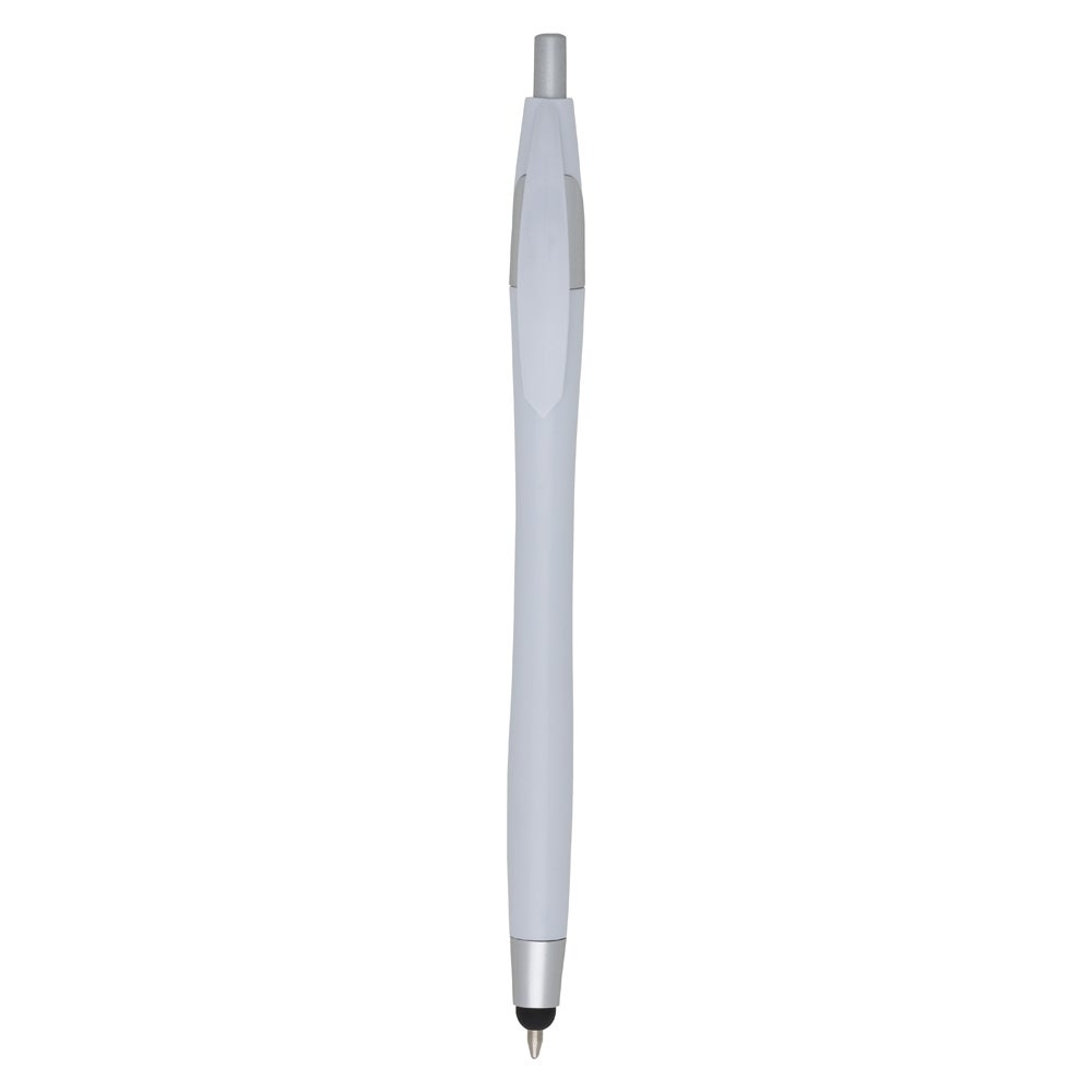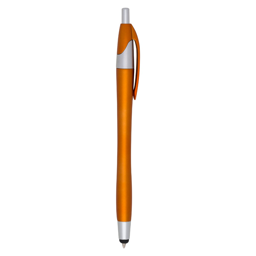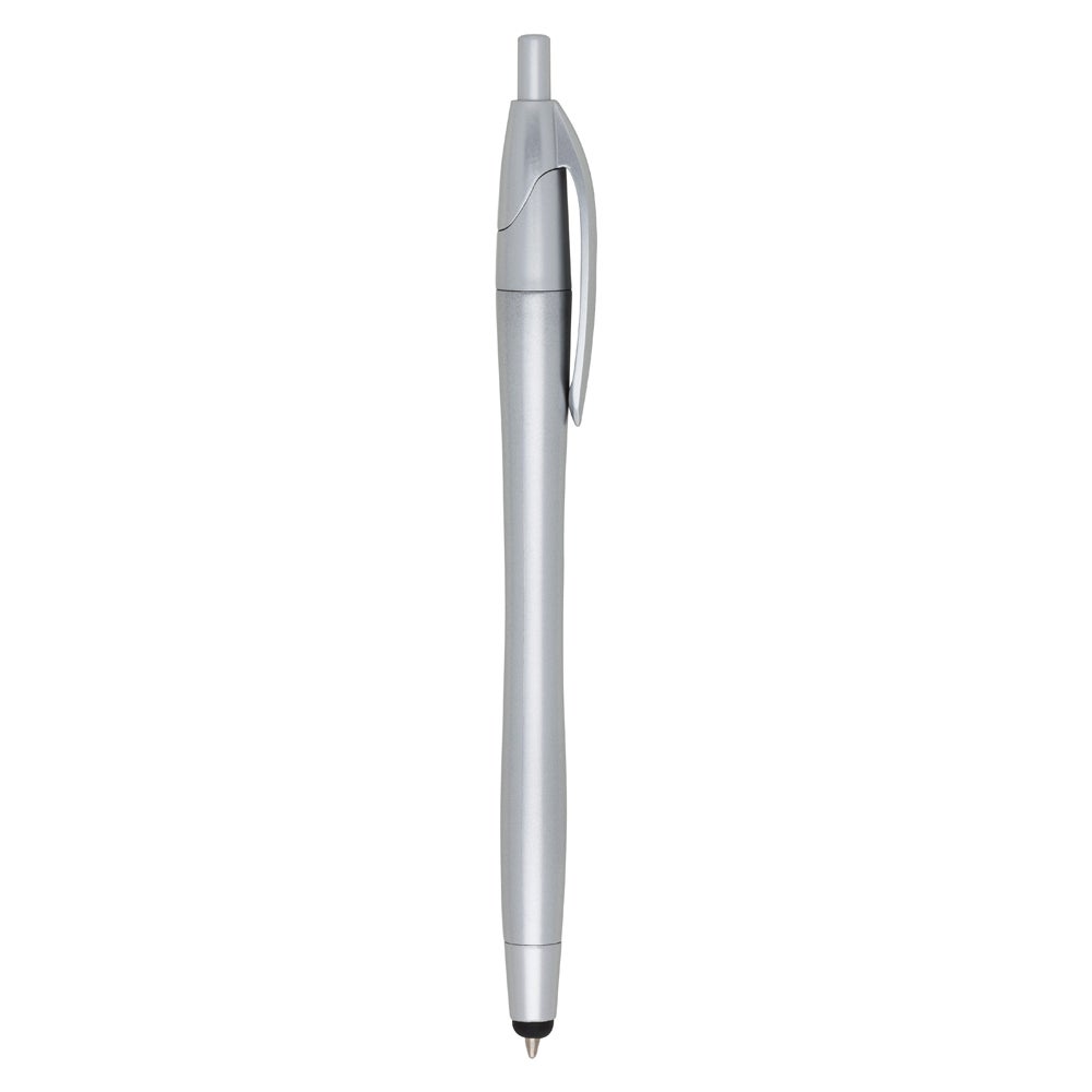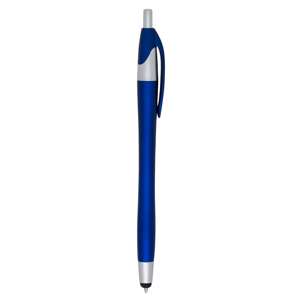 Caneta plástica com ponteira touch screen, carga esferográfica azul 1.0 mm e acionamento por clique