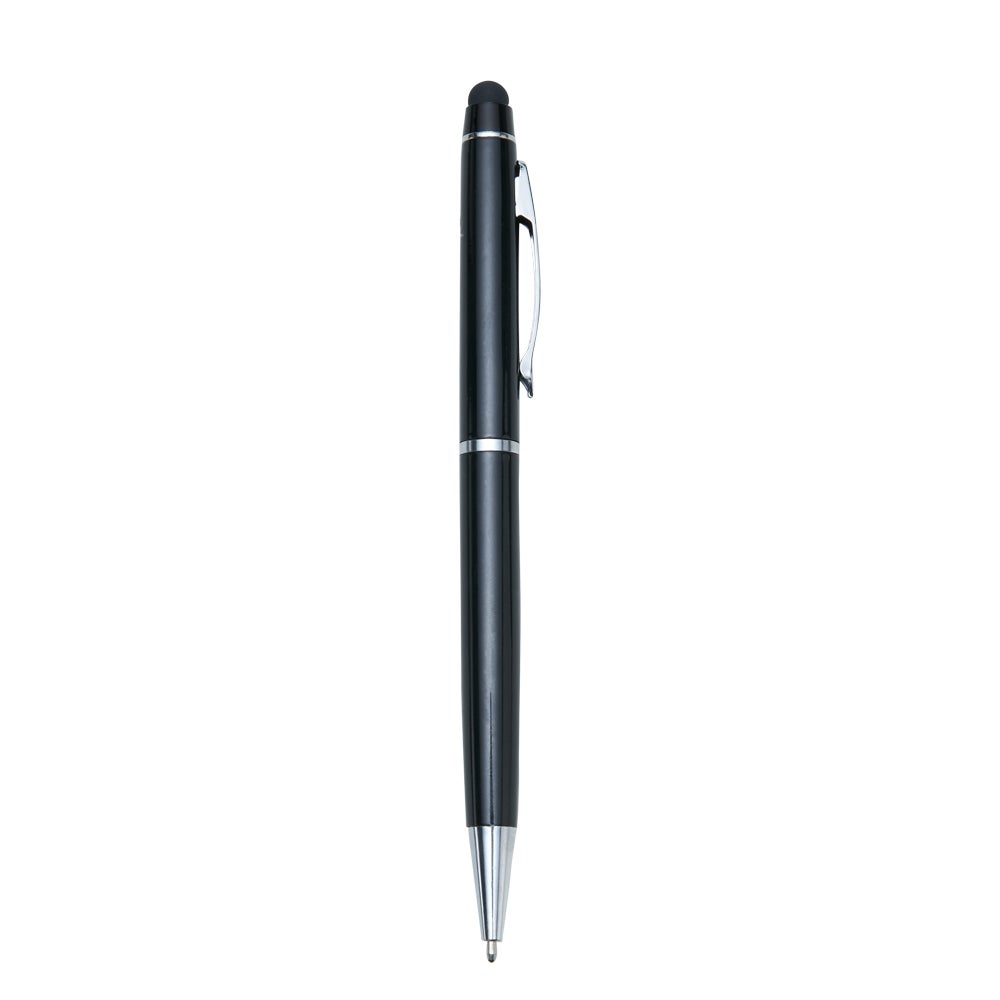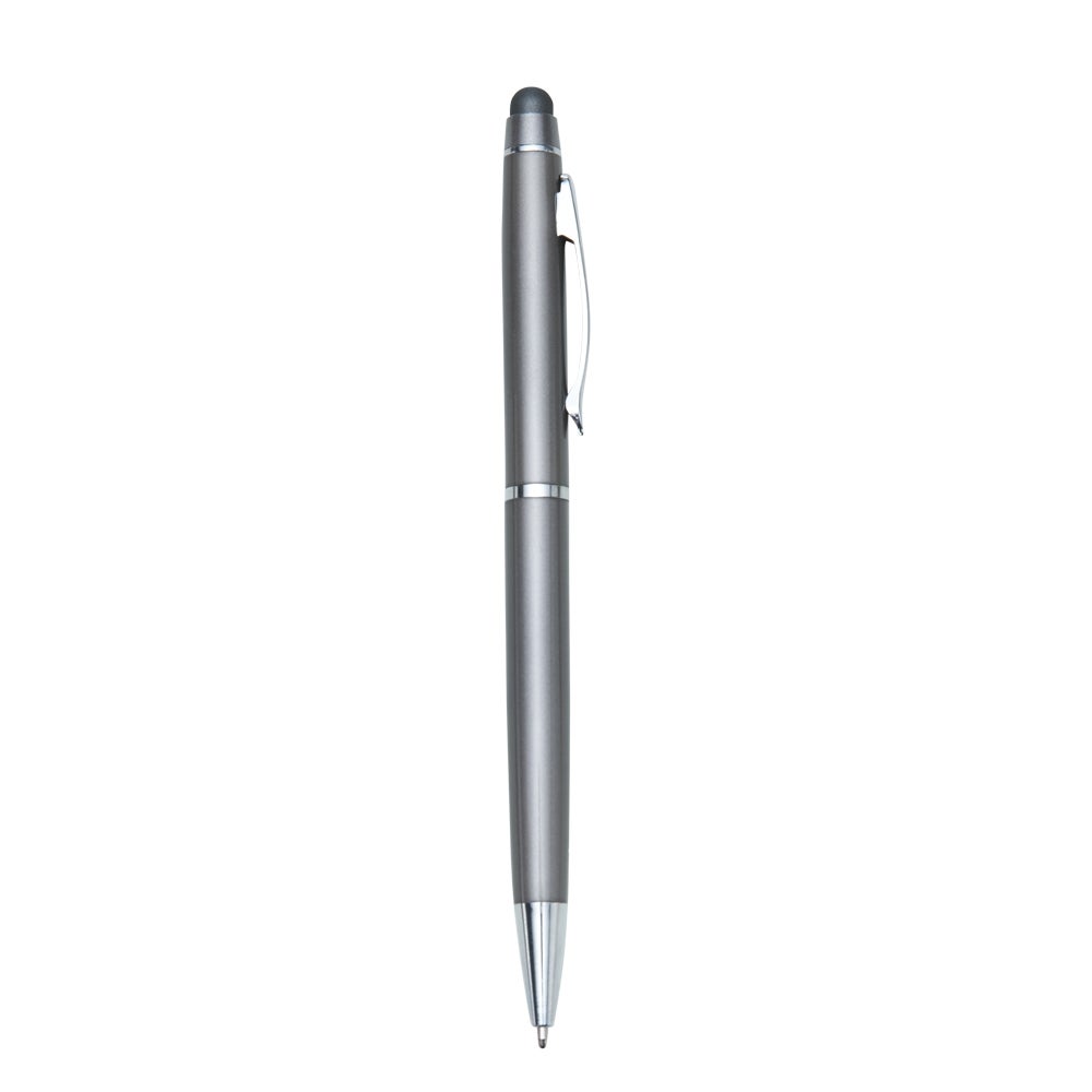 Caneta semimetálica colorida com touch screen, e detalhes em prata. Carga esferográfica azul e acionamento por rotação. REF.: 1347