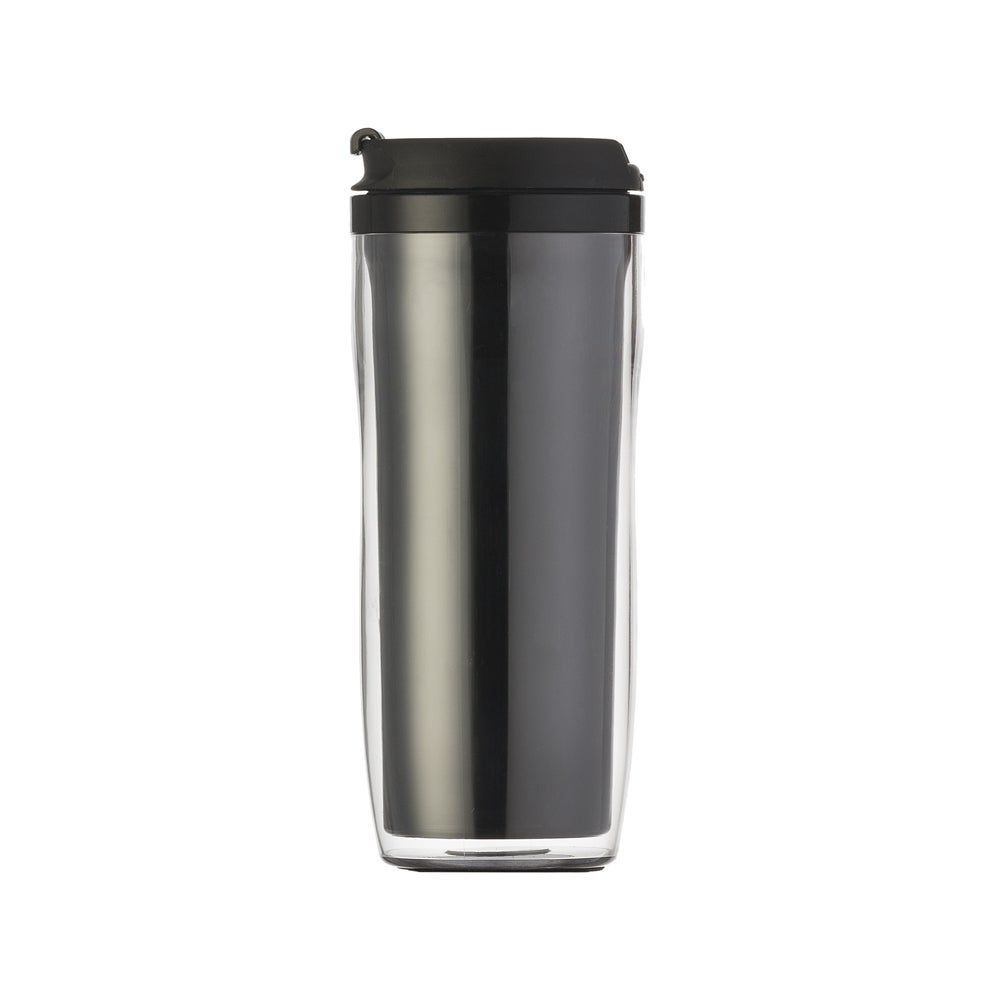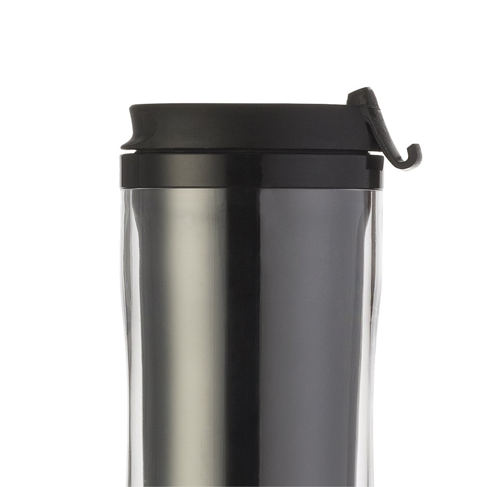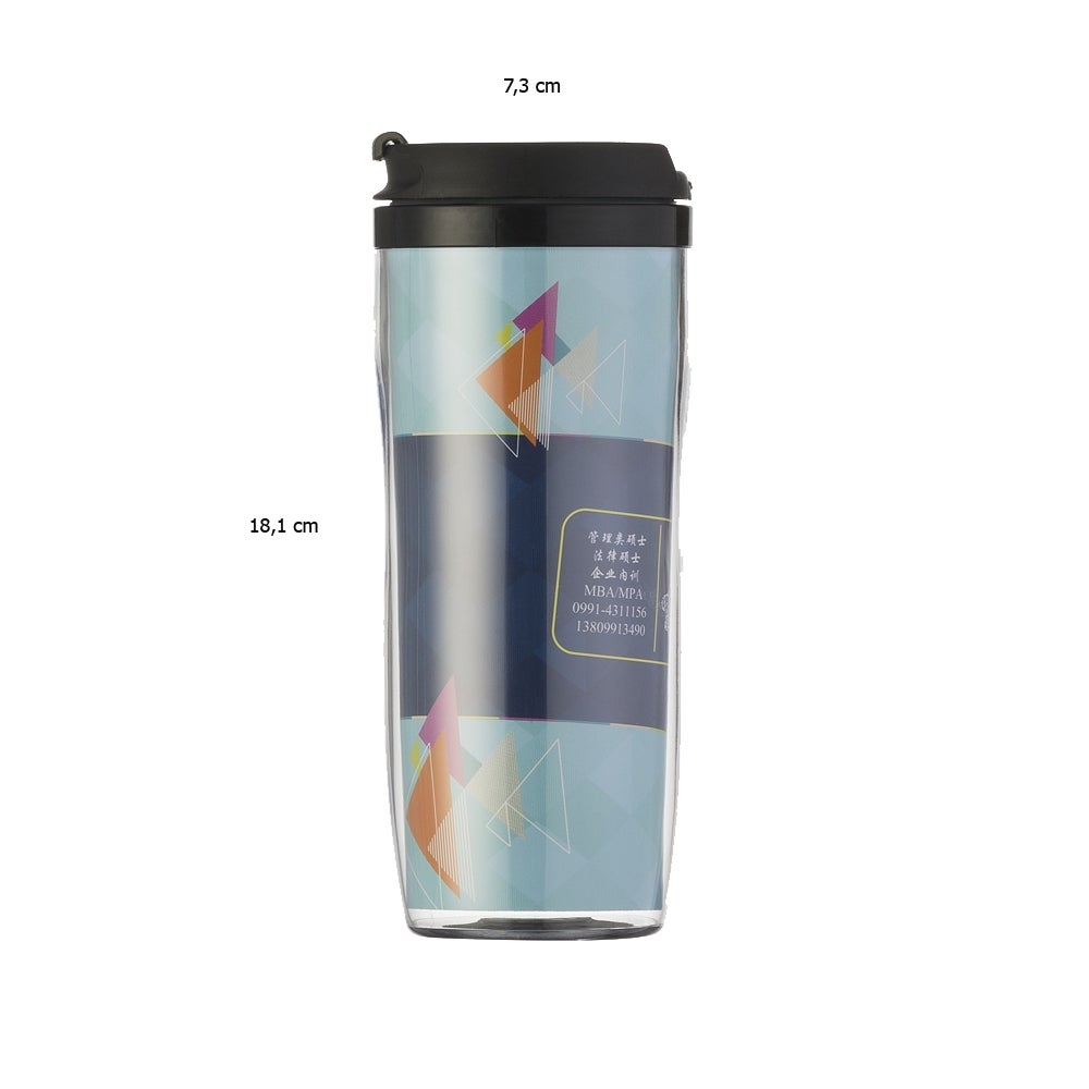 Copo plástico 350ml porta foto. Possui tampa plástica com “alavanca” para abrir/fechar compartimento para beber. Copo preto em plástico, basta rosqueá-lo para tirar da base acrílica. Copo acrílico com o fundo externo emborrachado. Para colocar a foto basta envolver o papel sob o copo preto e encaixá-lo sob a base acrílica. REF: 269