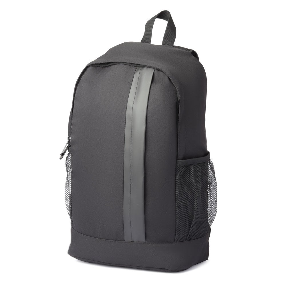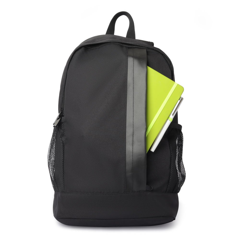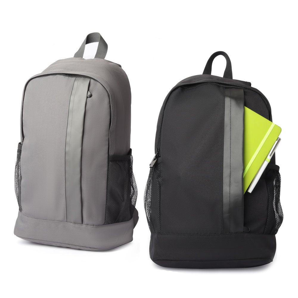 Mochila em tecido poliéster, com dois bolsos laterais, alça de ombro acolchoada, alça de mão e bolso frontal com zíper. Sem compartimento para notebook. REF: 3000